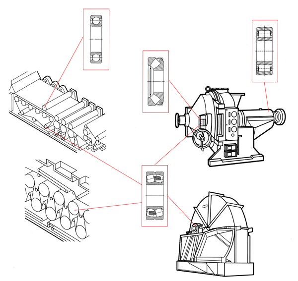 現(xiàn)代造紙機(jī)械的運(yùn)行特點(diǎn)是生產(chǎn)運(yùn)行高度自動(dòng)化,體現(xiàn)出高速、高質(zhì)、高效及對(duì)環(huán)境友好的特點(diǎn)。要求軸承在承受重載、高溫、高速的條件下能夠長期可靠地運(yùn)行。根據(jù)造紙?jiān)O(shè)備不同部位的應(yīng)用特點(diǎn),開發(fā)了專用系列產(chǎn)品。
